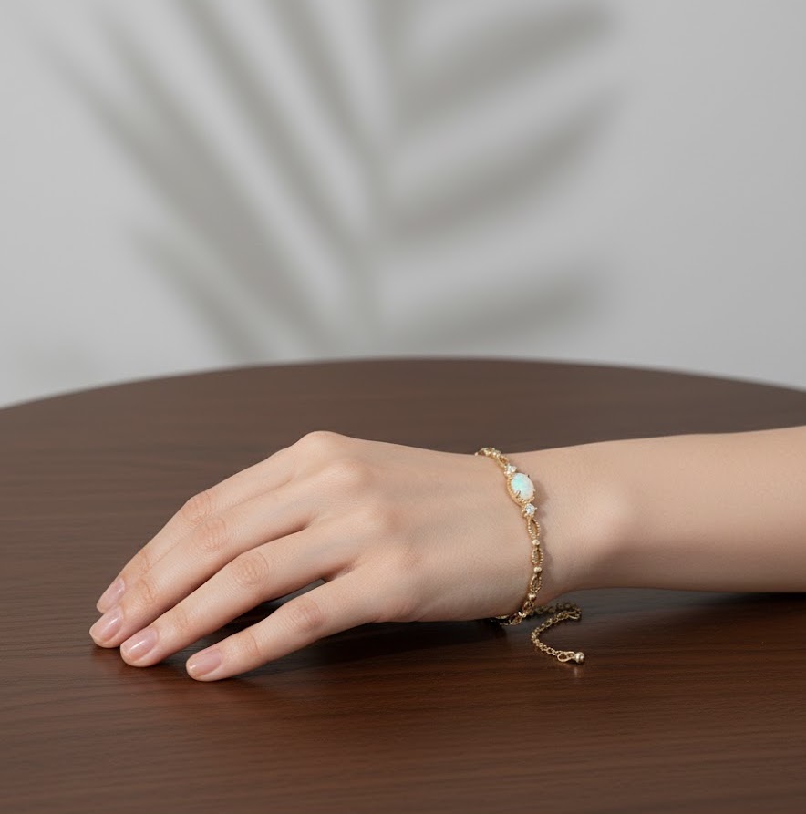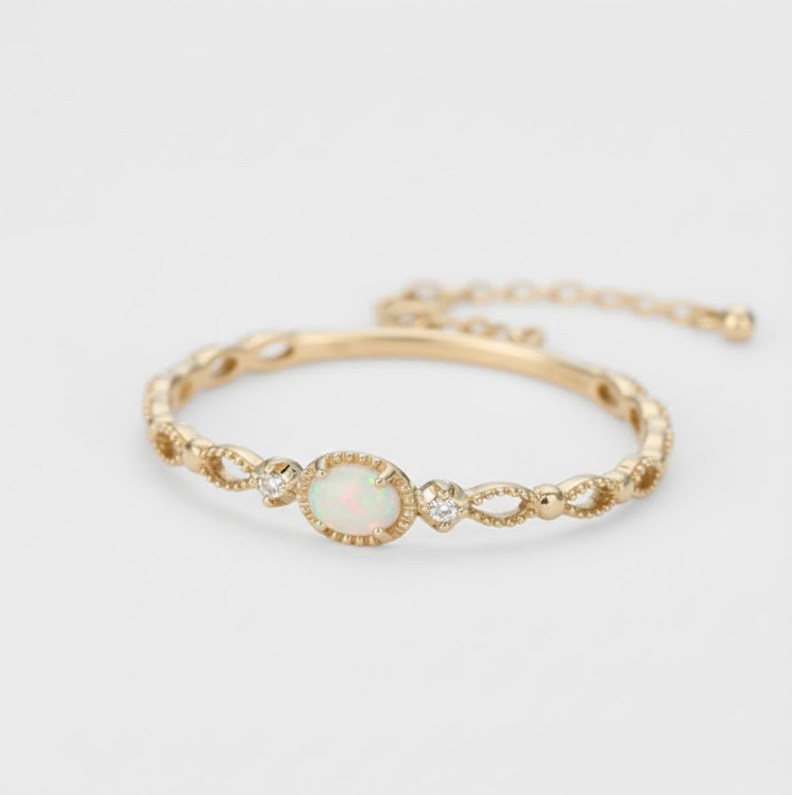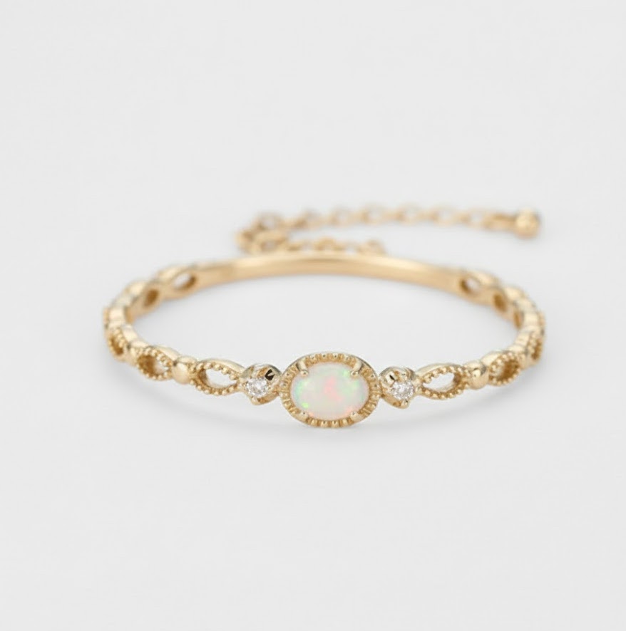 オパールとダイヤが優美に輝く繊細ブレスレット。華奢で上品な手元を演出。