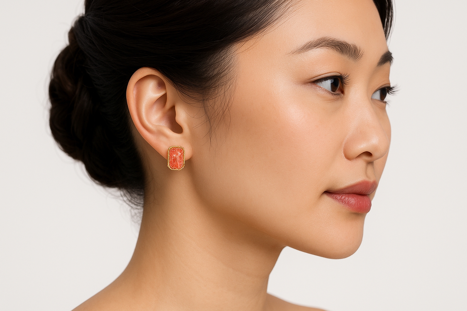 フォーマルにもカジュアルにも合わせやすく、顔周りを明るく照らすオレンジトーンは日本人の肌色とも好相性。自分へのご褒美や、特別な日のギフトとしても人気の高いジュエリーです。