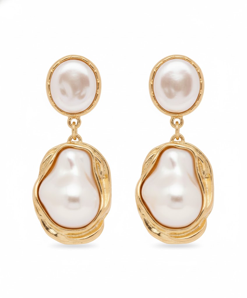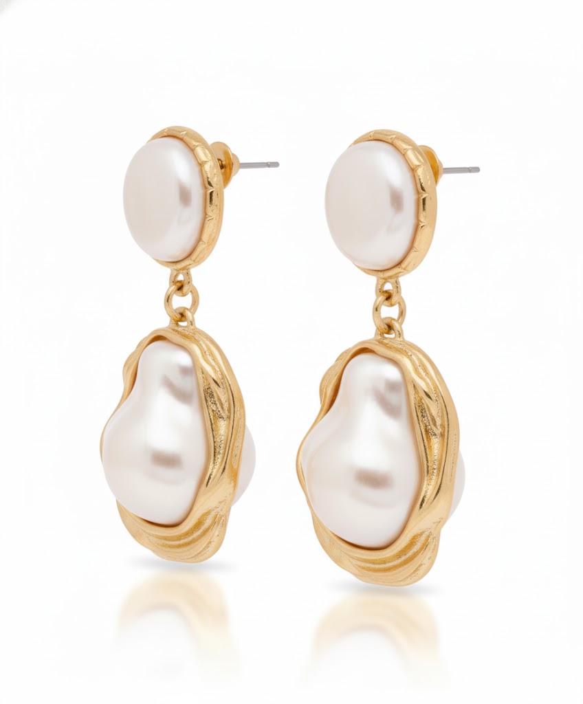 バロックパールが印象的なK18ピアス。自然の美しさと華やかさを兼ね備えたデザイン。