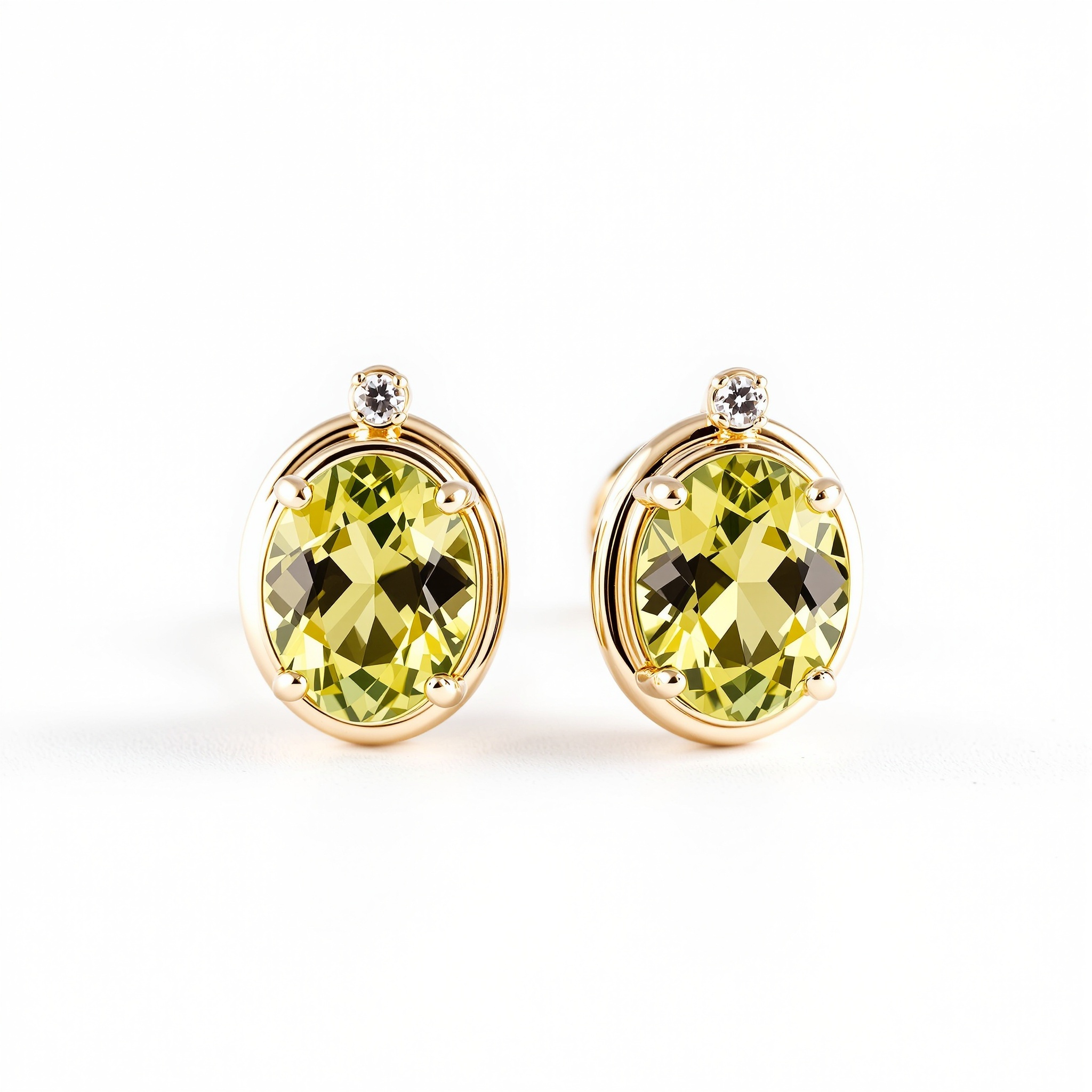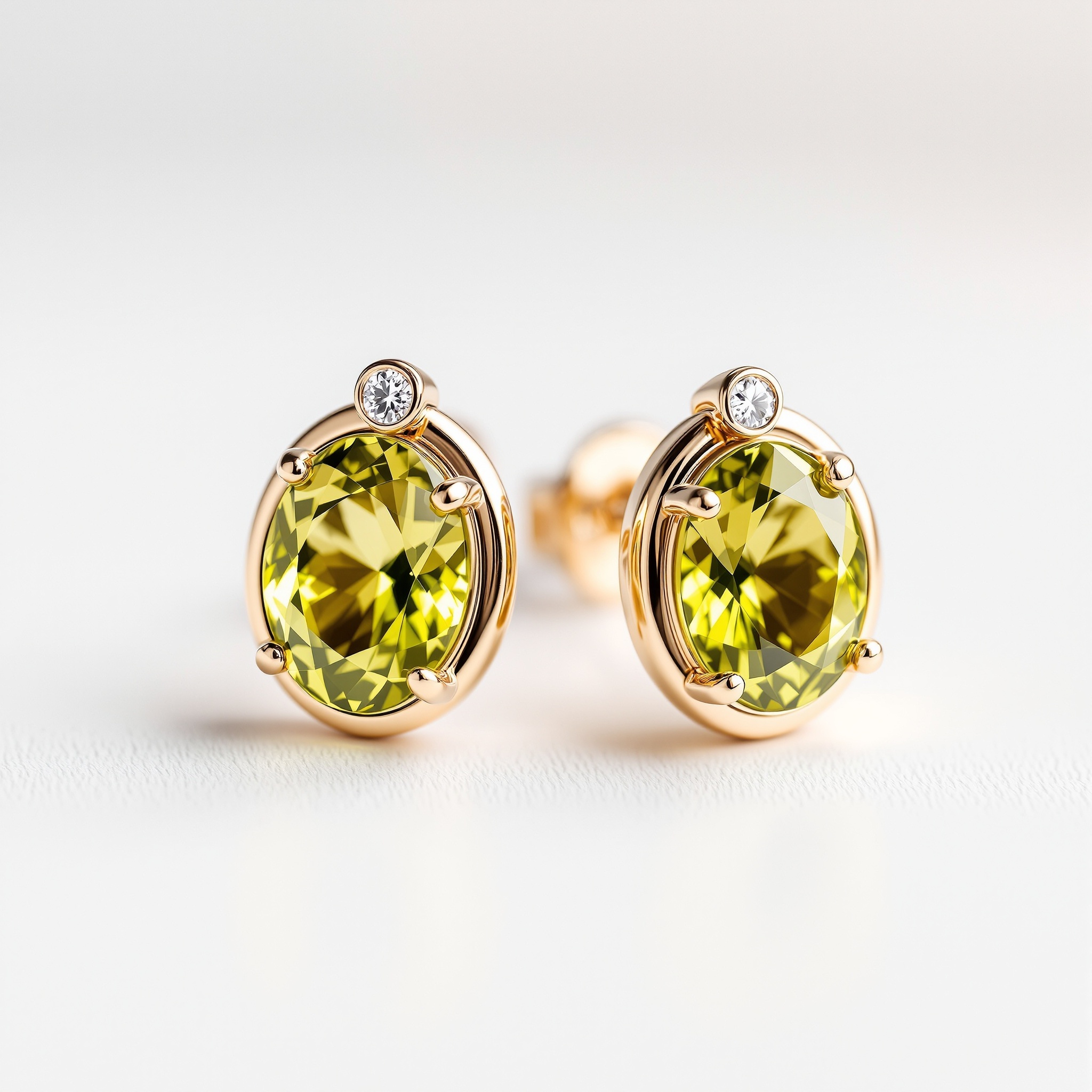 透明感あふれるオーバルカットの天然ペリドットに、上部にメレダイヤを一粒あしらった高級感あるピアス。K18イエローゴールドの台座が石の瑞々しいグリーンを引き立て、シンプルながら存在感のあるデザイン。誕生石ジュエリーとしても人気が高く、フォーマルにもカジュアルにも映える万能なアイテムです。